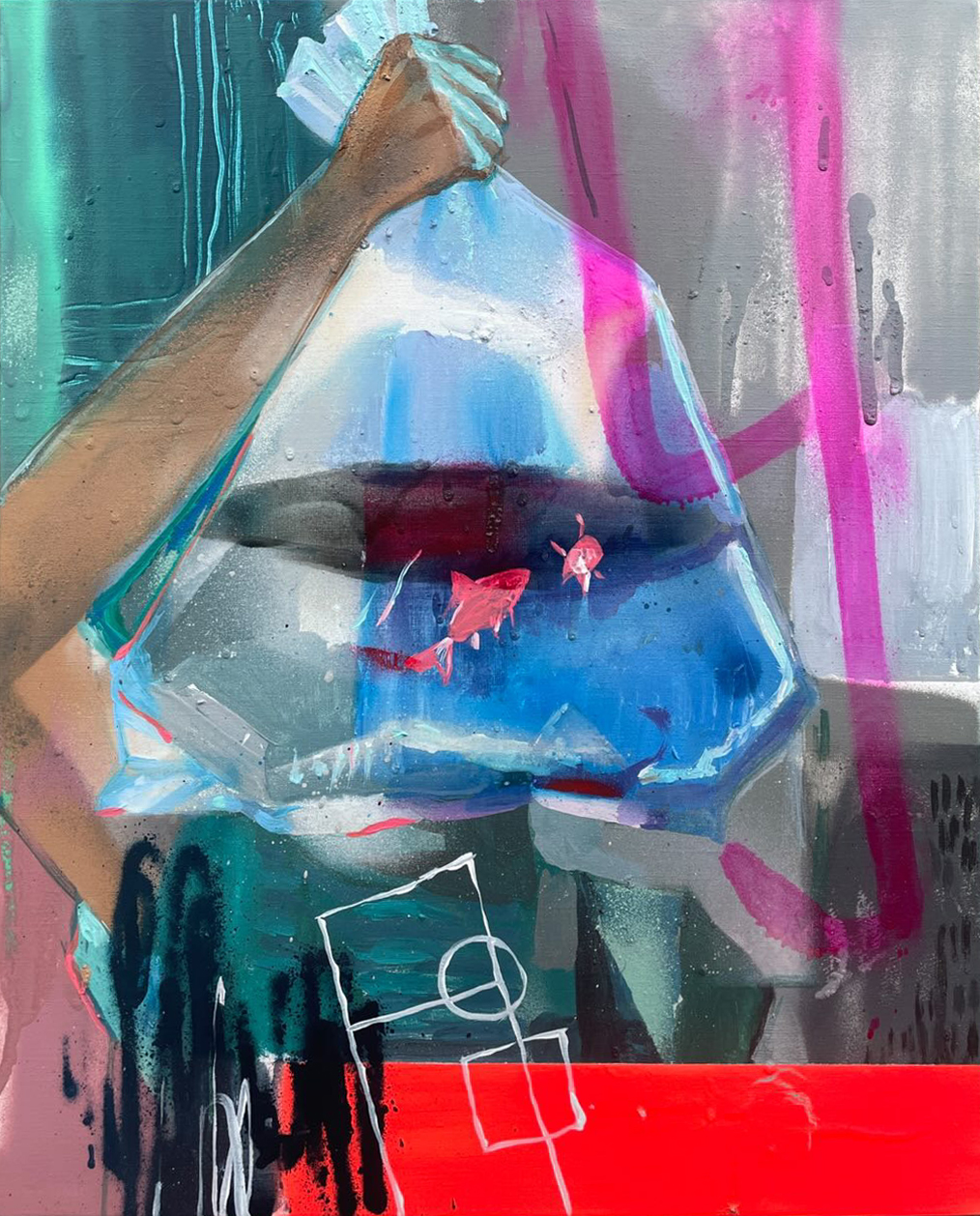 Из прозрачного пакета с водой просвечивают тихие домашние питомцы. Они вряд ли станут хорошими спутниками, но точно научат заботе. Они беззащитны и ограничены, но в детских глазах открывают целый подводный мир со своей красотой и бесконечным простором для исследования. Работа выполнена эксклюзивно для нашего аукциона Стартовая цена: 30 000 р.