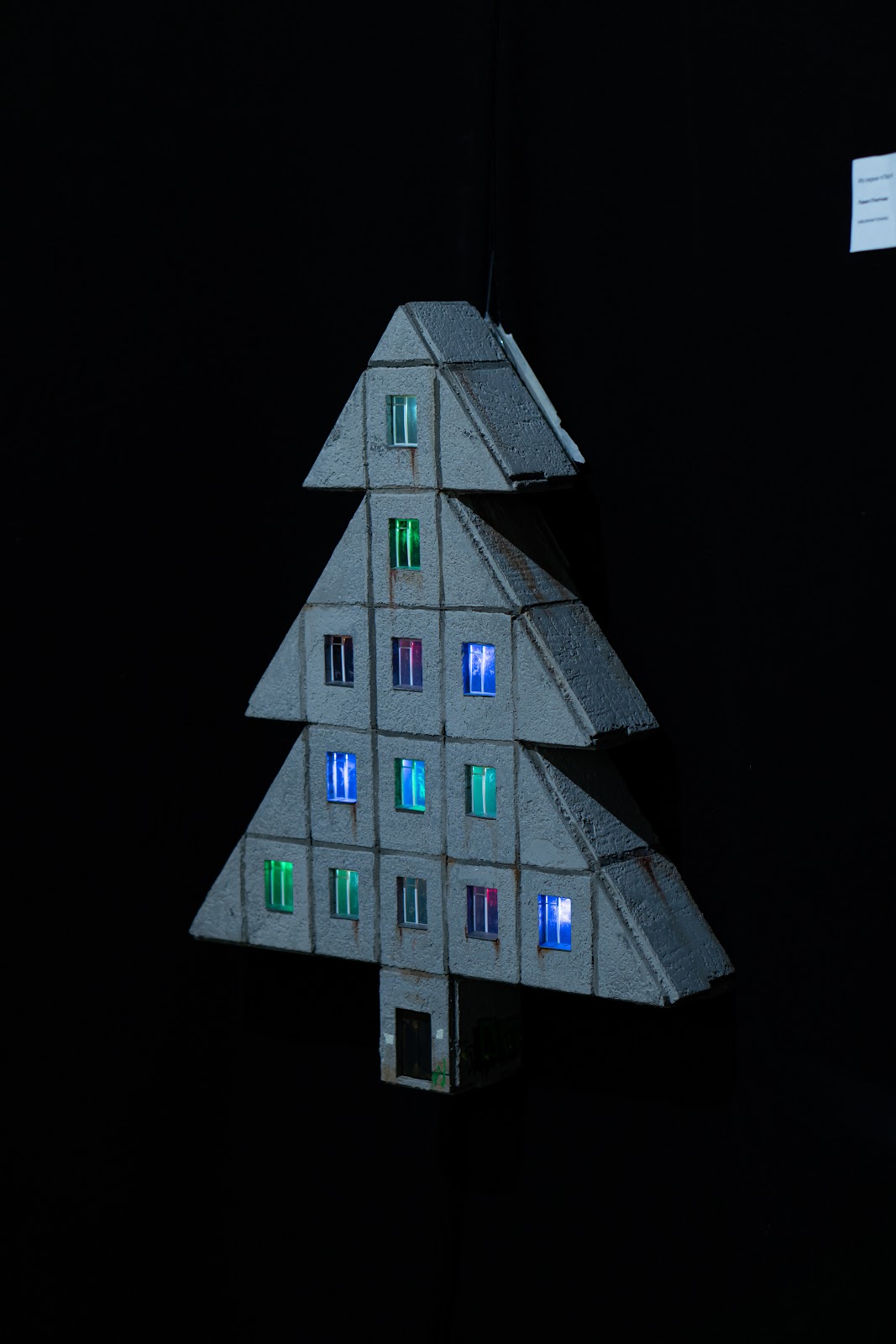 Трудно сказать, как долго держится в комнате запах мандарина, но в детских воспоминаниях он точно застывает крепко и надолго. Панельные дома, выросшие однажды как временные, застыли серым лесом на многие десятилетия. Идентичные кварталы, покрывающие узором жилые районы разных городов, благодаря советскому кинематографу стали неотъемлемым символом Нового года. В этой работе автор смешивает вместе образы ностальгии, выстраивает из панелей макета новогоднюю ёлку, фиксируя таким образом ощущение торжества в привычном быту. Работа предоставлена DIDI Gallery Стартовая цена: 70 000 р.