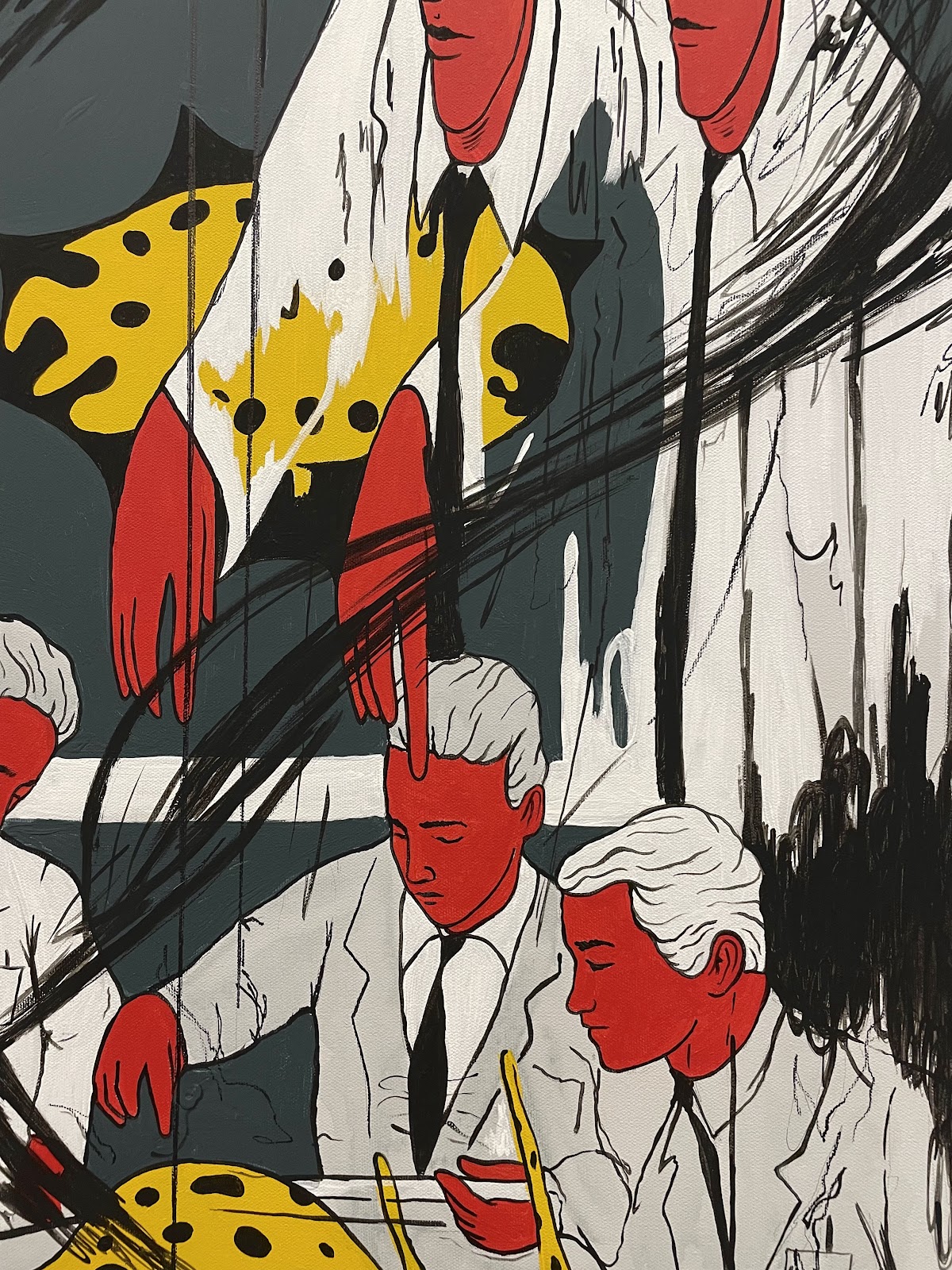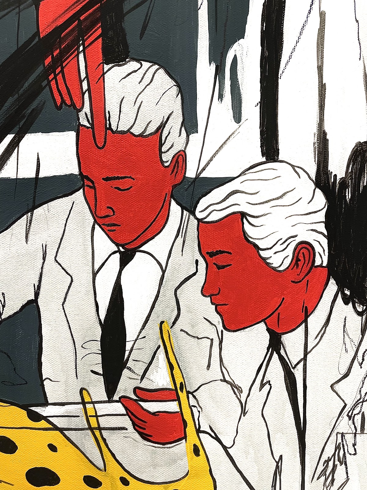 Что происходит за закрытыми дверьми научных институтов, и что на уме у людей в белых халатах — одни из немногих вопросов, указывающих на то, что исследователи сами часто нуждаются в представлении. Продолжая тему серии “Рассеянное наблюдение”, художник вновь меняет местами участников эксперимента, холст таким образом становится своеобразной документацией контакта с неизвестной субстанцией. Однако вместо точных данных единицей меры здесь является чувственный опыт, больше свойственный детскому ‘взгляду снизу’. Работа предоставлена Syntax Gallery Эстимейт: 190 000 -210 000